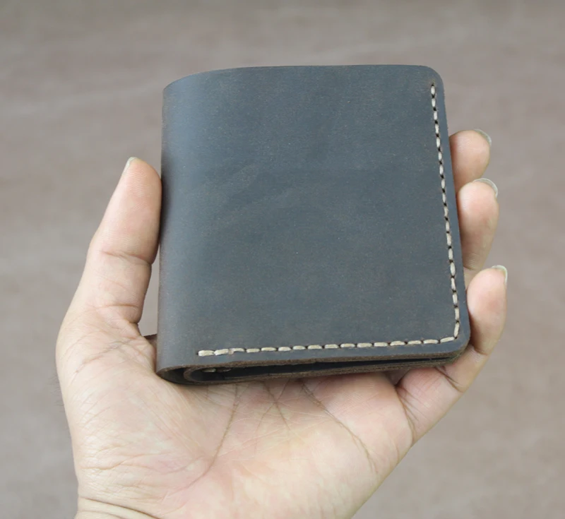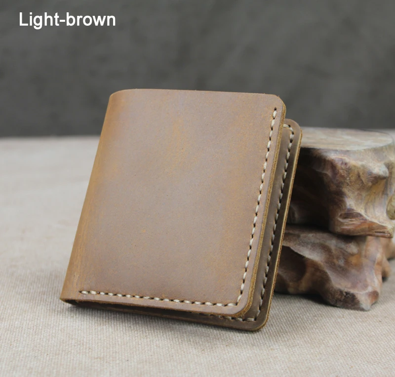 Handmade Vintage Full Grain Crazy Horse Genuine Leather Small Wallet Men Clutch Bag Male Purse Money Bag