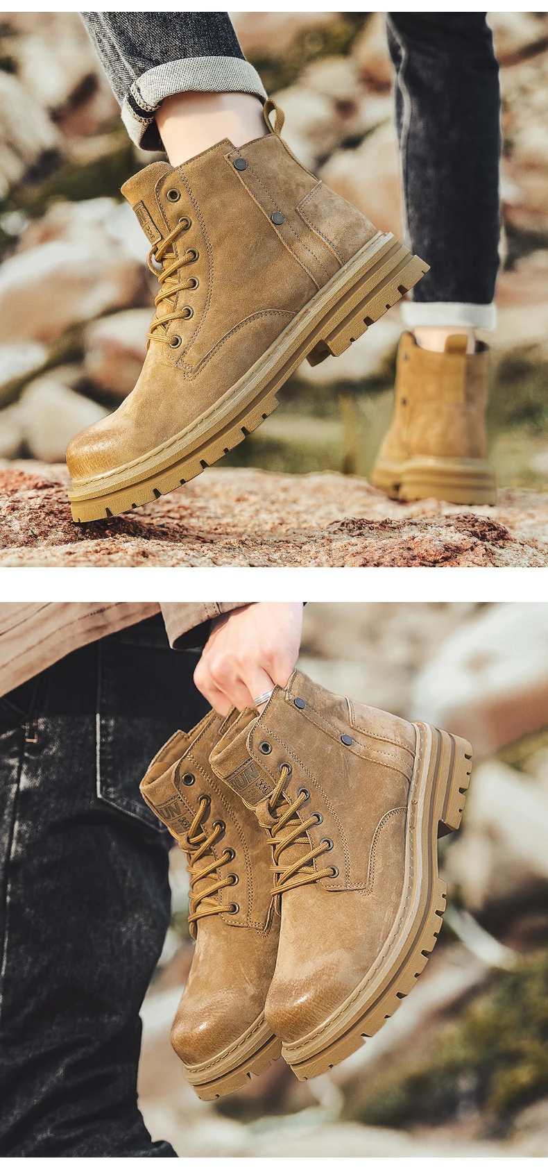 New Motorcycle and Ankle Boots Waterproof Boots Men Leather Shoes Men Casual Boot Bota Masculina Men’s High-top Fashion Shoes