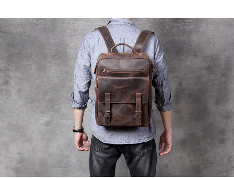 Vintage Crazy Horse Genuine Leather Backpack Men Hiking Bagpack laptop Bag outdoor Rucksack Large M811