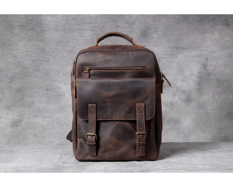 Vintage Crazy Horse Genuine Leather Backpack Men Hiking Bagpack mochila Cowhide 15.6″inch laptop Bag outdoor Rucksack Large M811