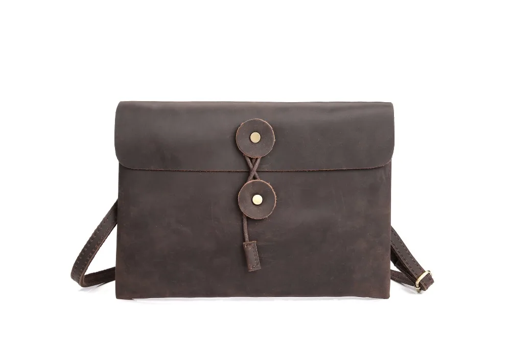 Vintage Crazy Horse Genuine Leather Men Shoulder Bag Leather Messenger Bags Men’s Casual Crossbody Bag IPAD Bags Clutch Brown