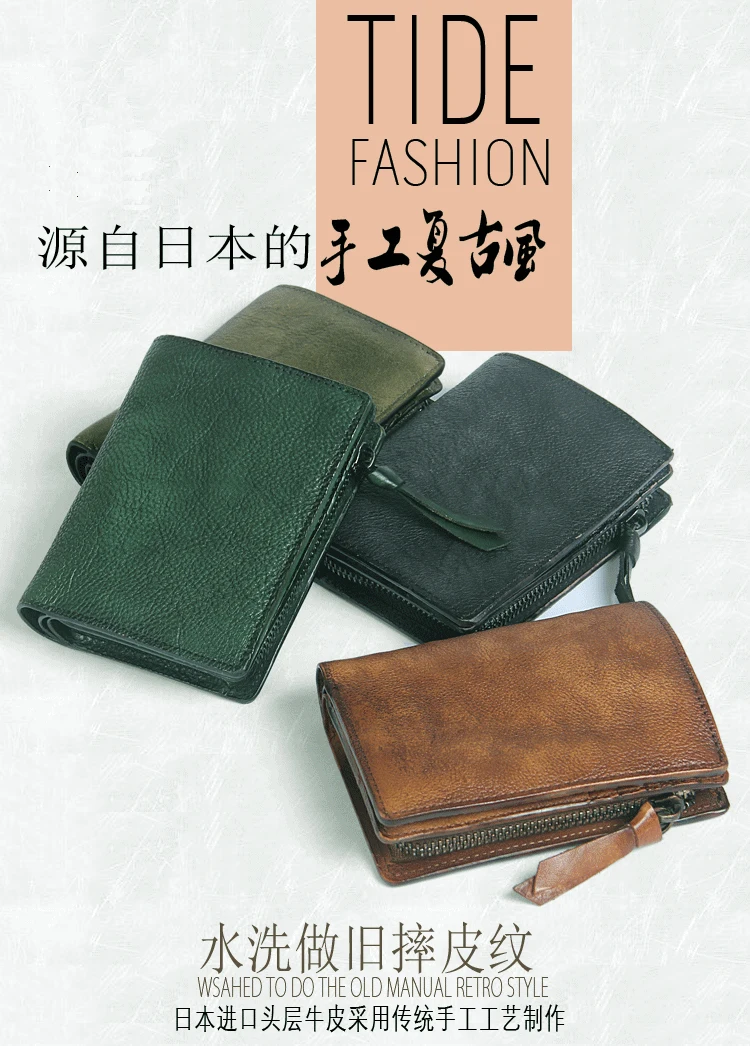 Vintage Genuine Leather Wallet men Purse leather men Wallet vertical short money bag male wallet credit card holder